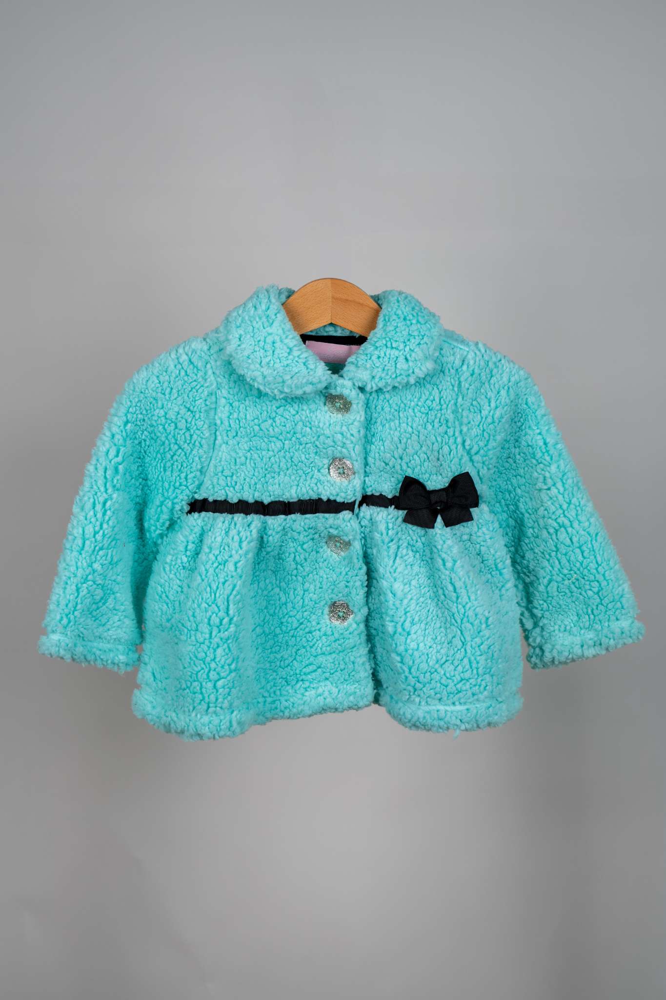 Add a touch of glamour to your child's ensemble with the KidsHQ Teal Furry Coat Set, featuring elegant black ribbons for a classic look that’s perfect for any winter event.